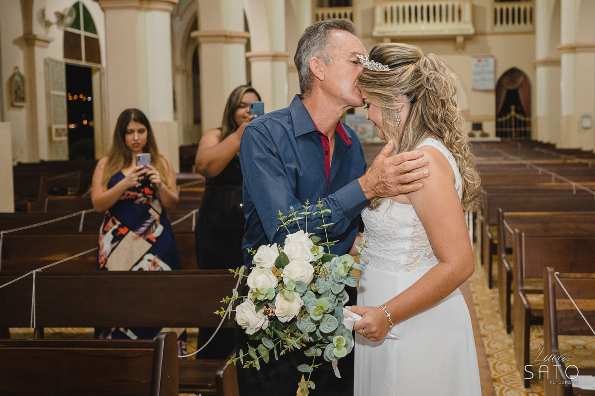 Entrada da noiva com o pai durante o casamento íntimo realizado na cidade de São Gotardo-MG