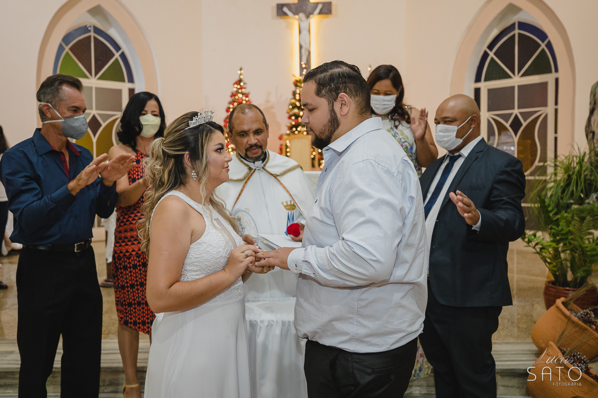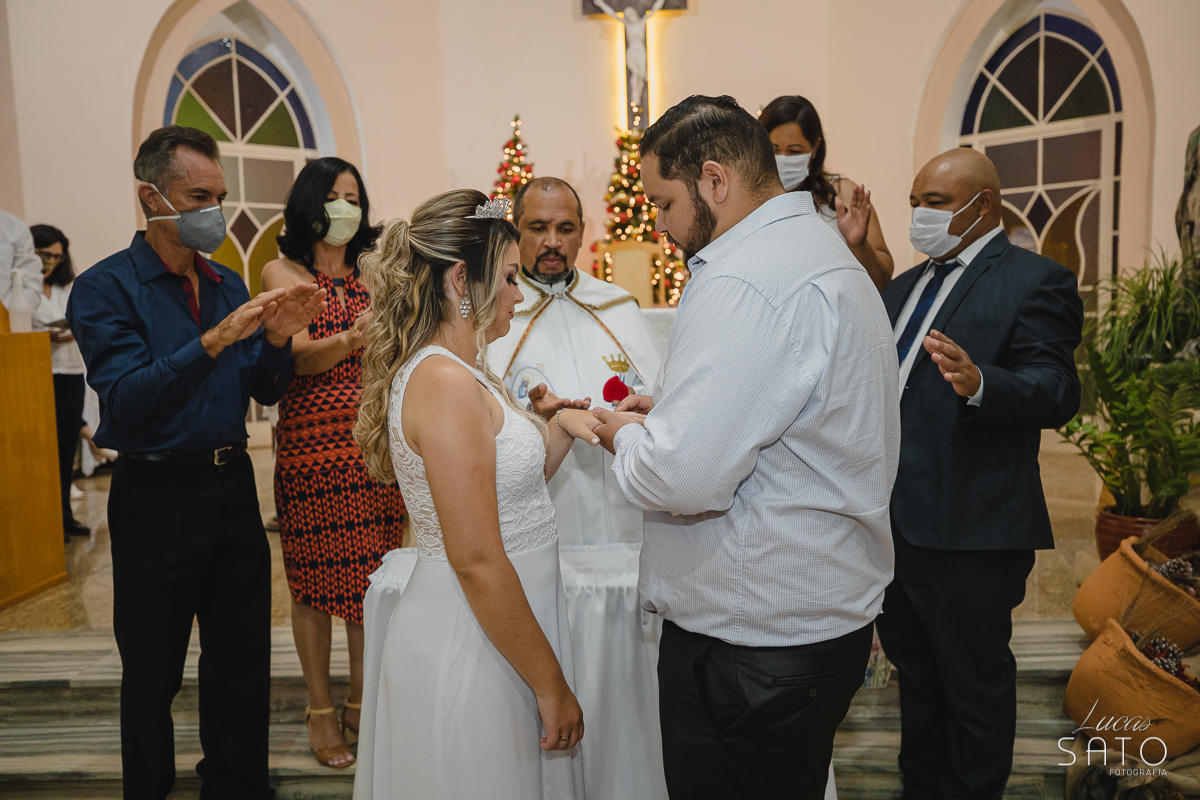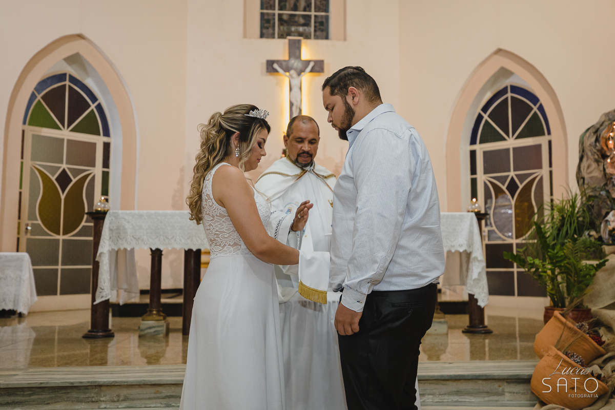 Aliança de casamento durante cerimônia religiosa realizada em São Gotardo_MG