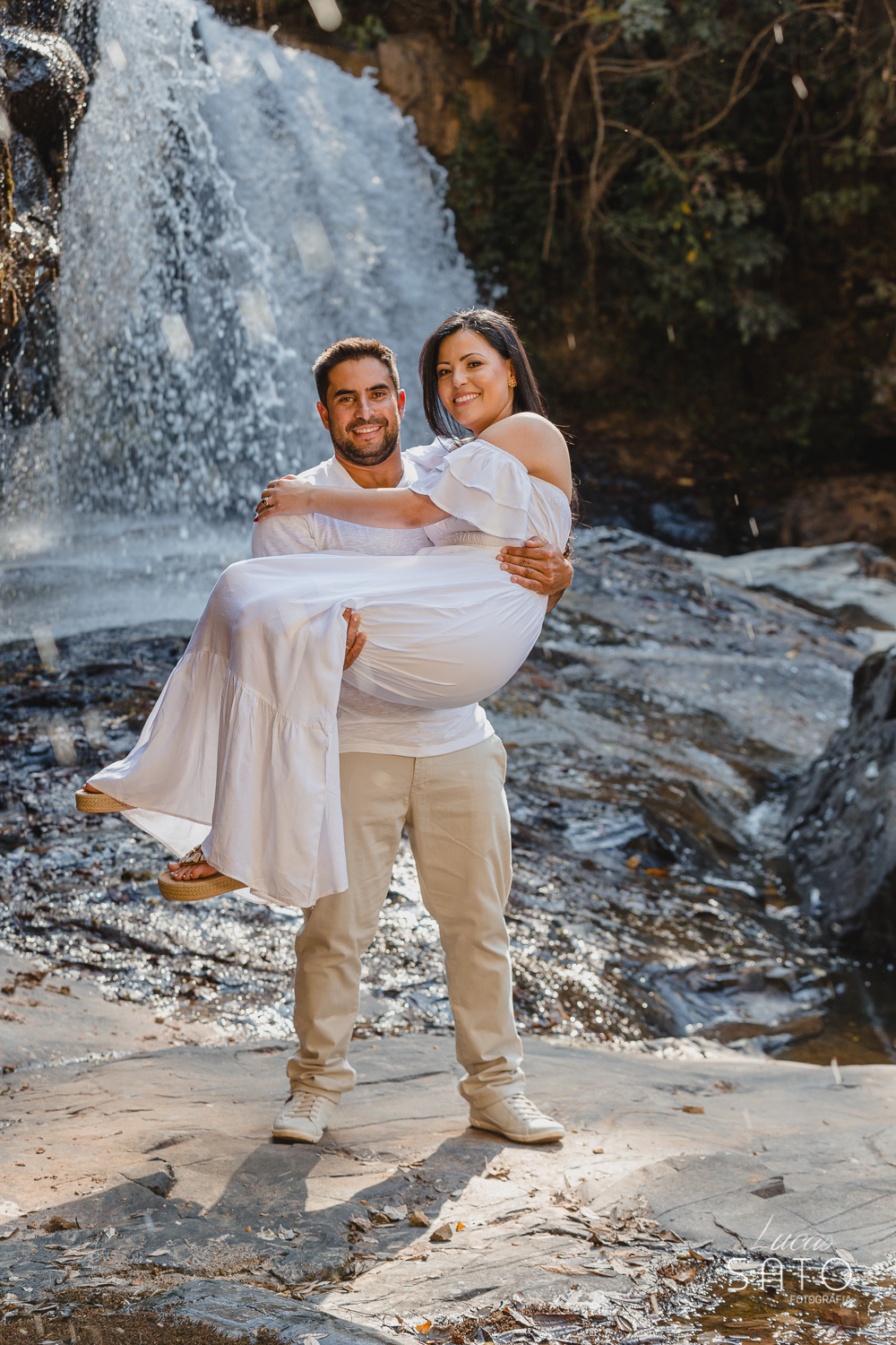 Começamos o ensaio fotográfico na Cachoeira do Indaiazinho e volta passamos na Serrinha e no rio Funchal. O ensaio de casal ficou maravilhoso e lindo!